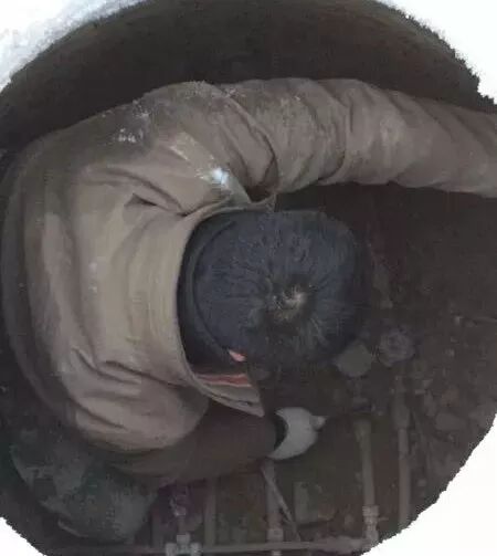 中源水务公司同心分公司维修人员杨兴云冒着严寒下井维修。