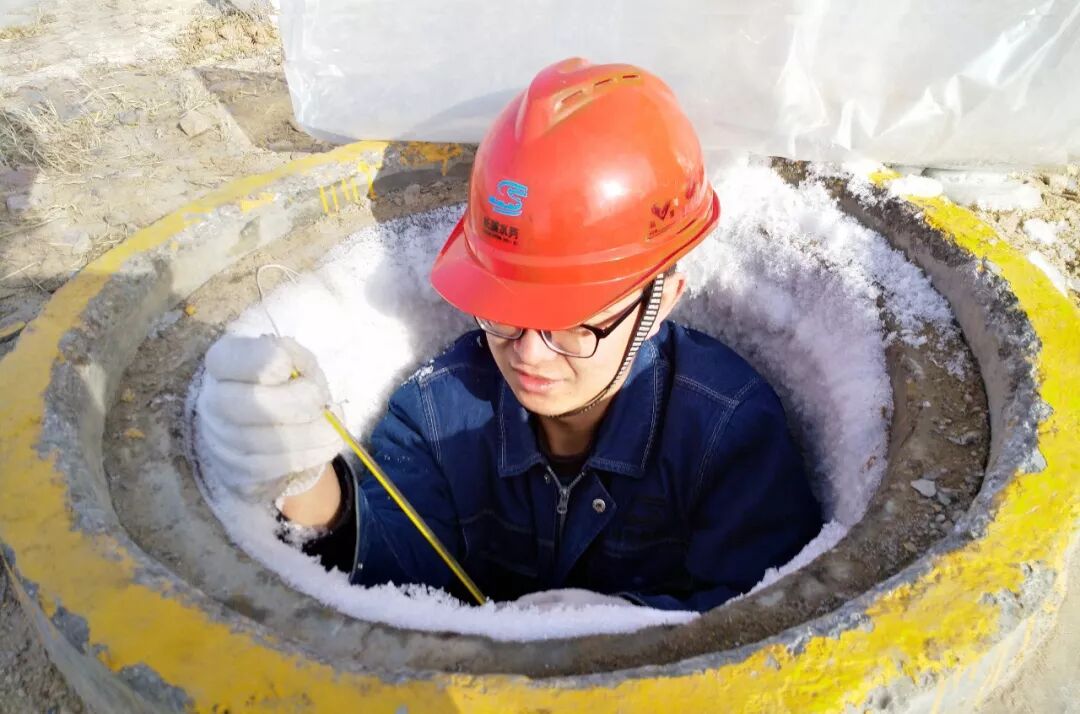 长城水厂运行人员段文俊,正在检查阀井温度,做好供水管道和阀门防冻保温工作。