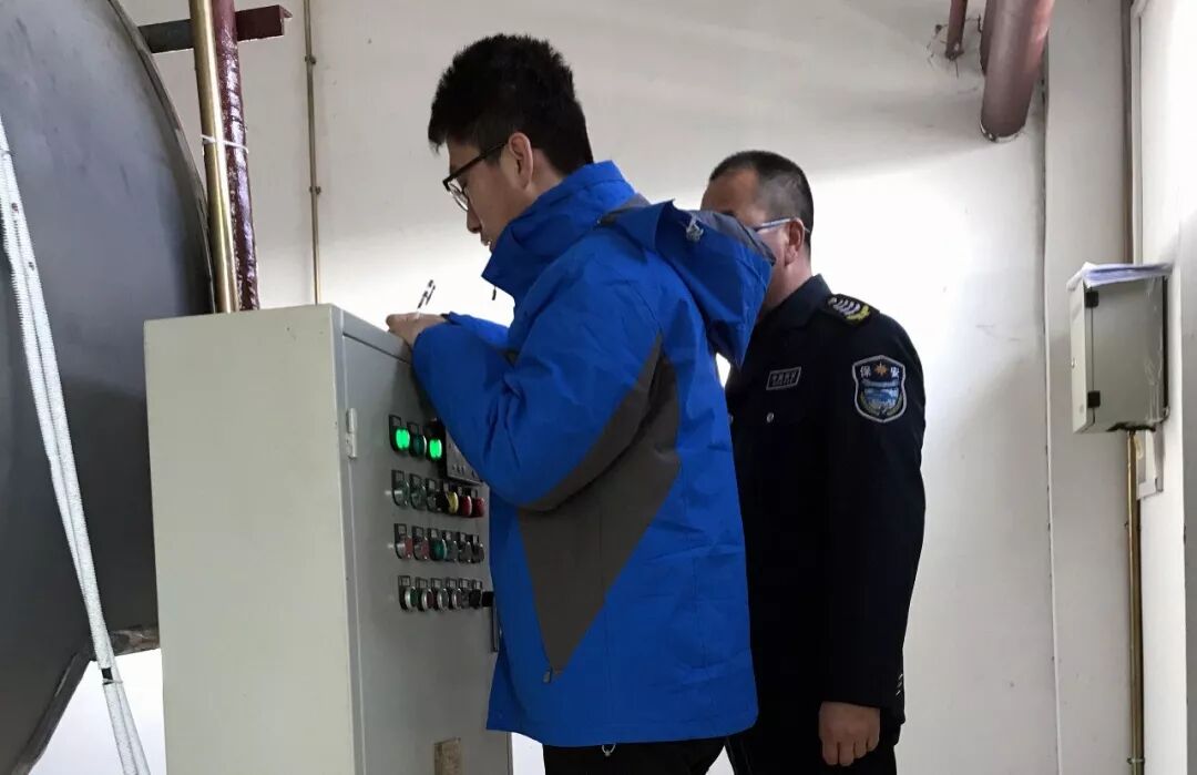 长城水务服务中心员工郜磊、正同安保人员开展锅炉巡检工作。