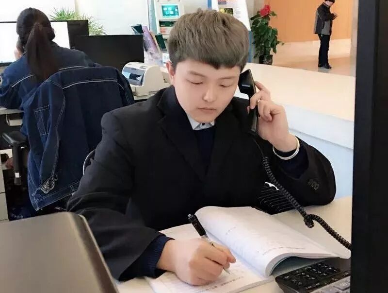 长城滨河水务客服部员工臧金龙,在大厅为用户办理业务。