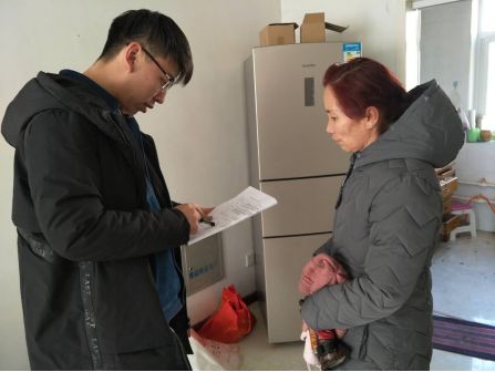 中源水务公司西部分公司运行人员水源泵站吴保明、马波,进村核对入户信息。