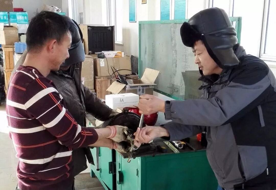 长城水务检修岗位白光宗等人,正在机修车间更换电机轴承。