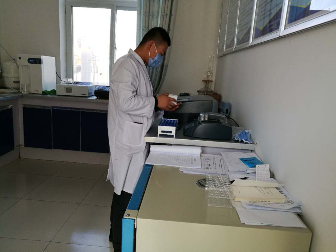 六盘山水务公司化验员王升在实验室对出口水质氨氮进行化验。