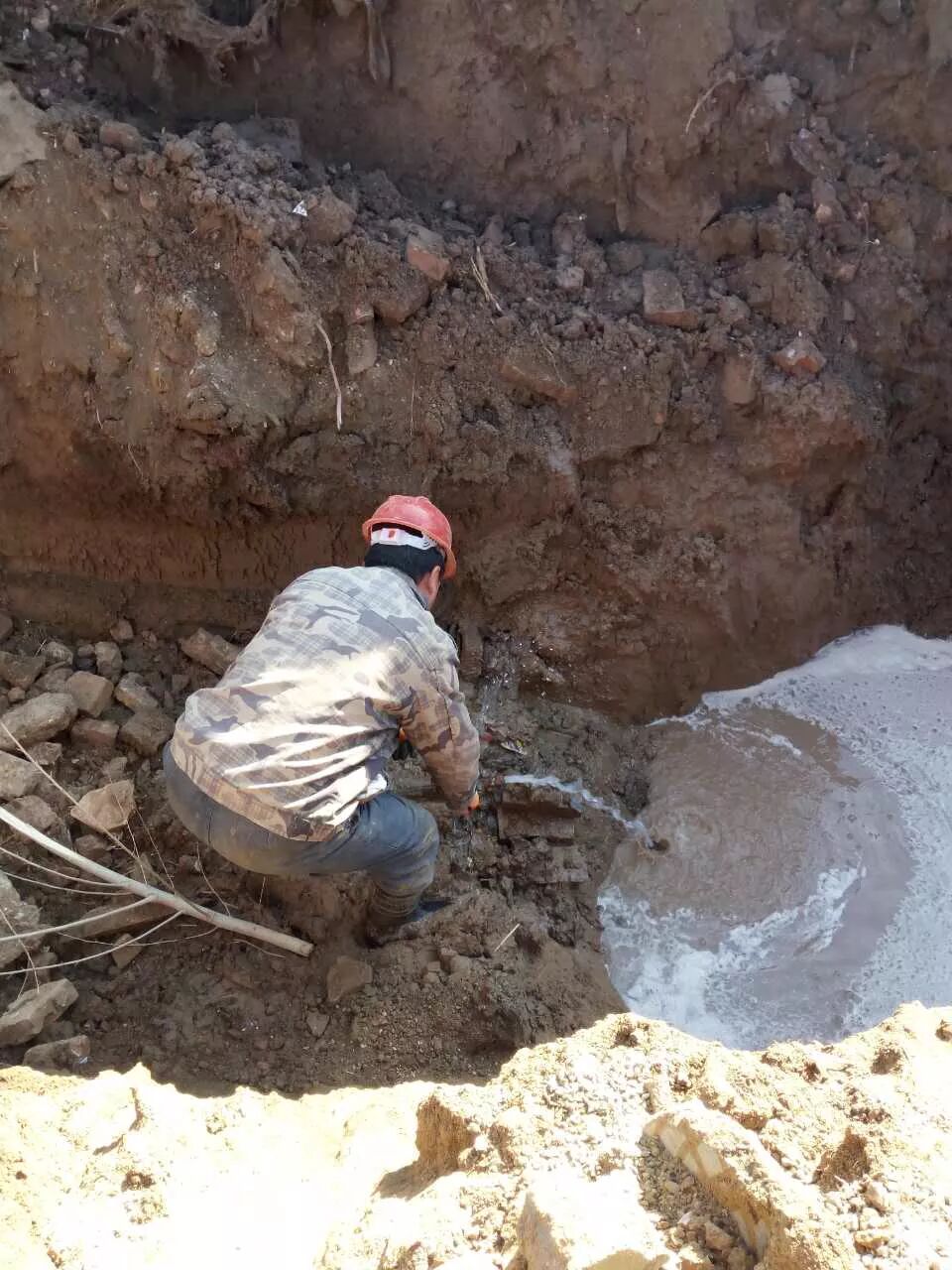 中源水务公司海原分公司值班人员黑生锐,在政府南街检修水管。
