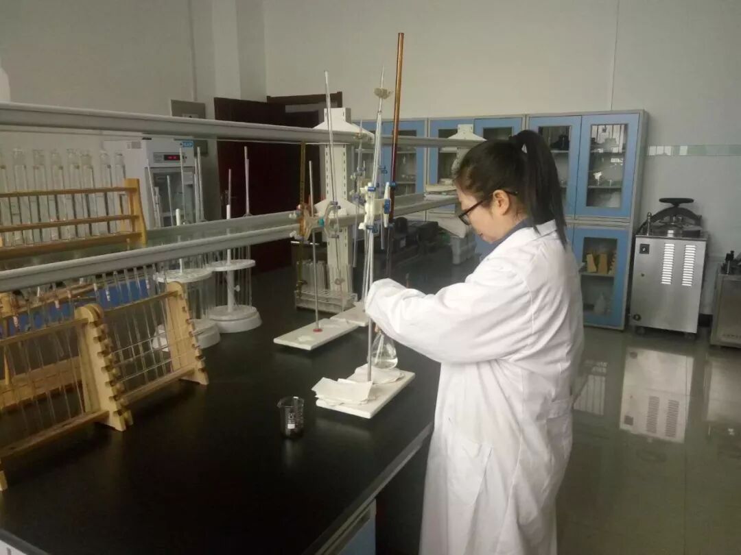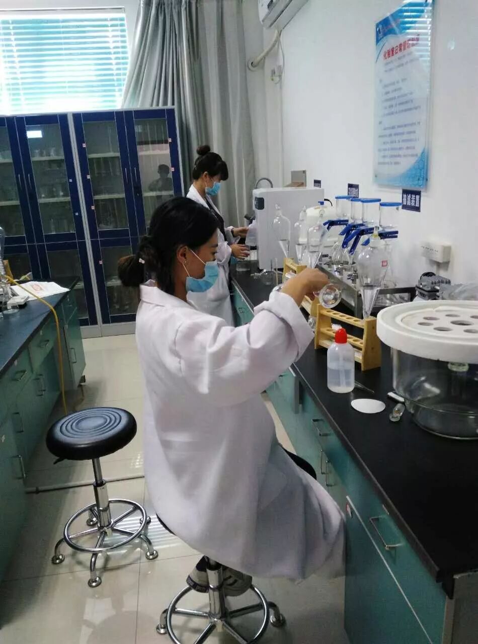 红寺堡水务公司鲁家窑水厂化验员冯晓娜,正在做鲁家窑水厂取样化验。
